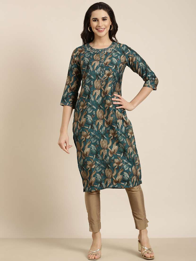 - » women teal round neck straight kurta