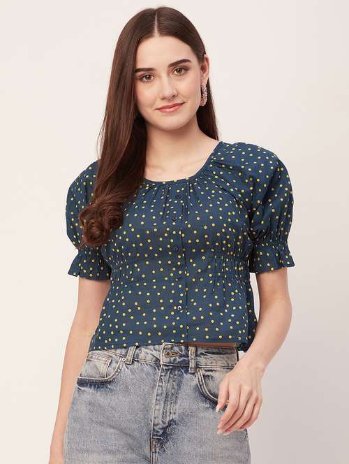 *Includes: This Clothing Consists Of 1 Top(Any Accessories Worn By The Model Are Not For Sale)*Material: Cotton Cambric*Top Length: 20 Inches (Approx.)*Model Stats: The Model In The Image Is 178 Cm Tall, And Bust 34\ Inches Is Wearing Size - (S) Small*Features: Round Neck, Short Sleeve, Button-Down, Short Length, Lightweight, All Over Printed Pattern. *Care: Machine Wash At 30 C, Tumble Dry At Low Heat, Iron On Low Temperature.*Size Information: Please Refer To Our Size Chart Before Making The Purchase. If Your Size Is In Between Two Sizes, We Recommend That You Choose A Larger Size.*Tags: Printed Tops For Women, Cinched Waist Tops, Button Down Tops For Women, Printed Tops For Women 2023, Summer Tops