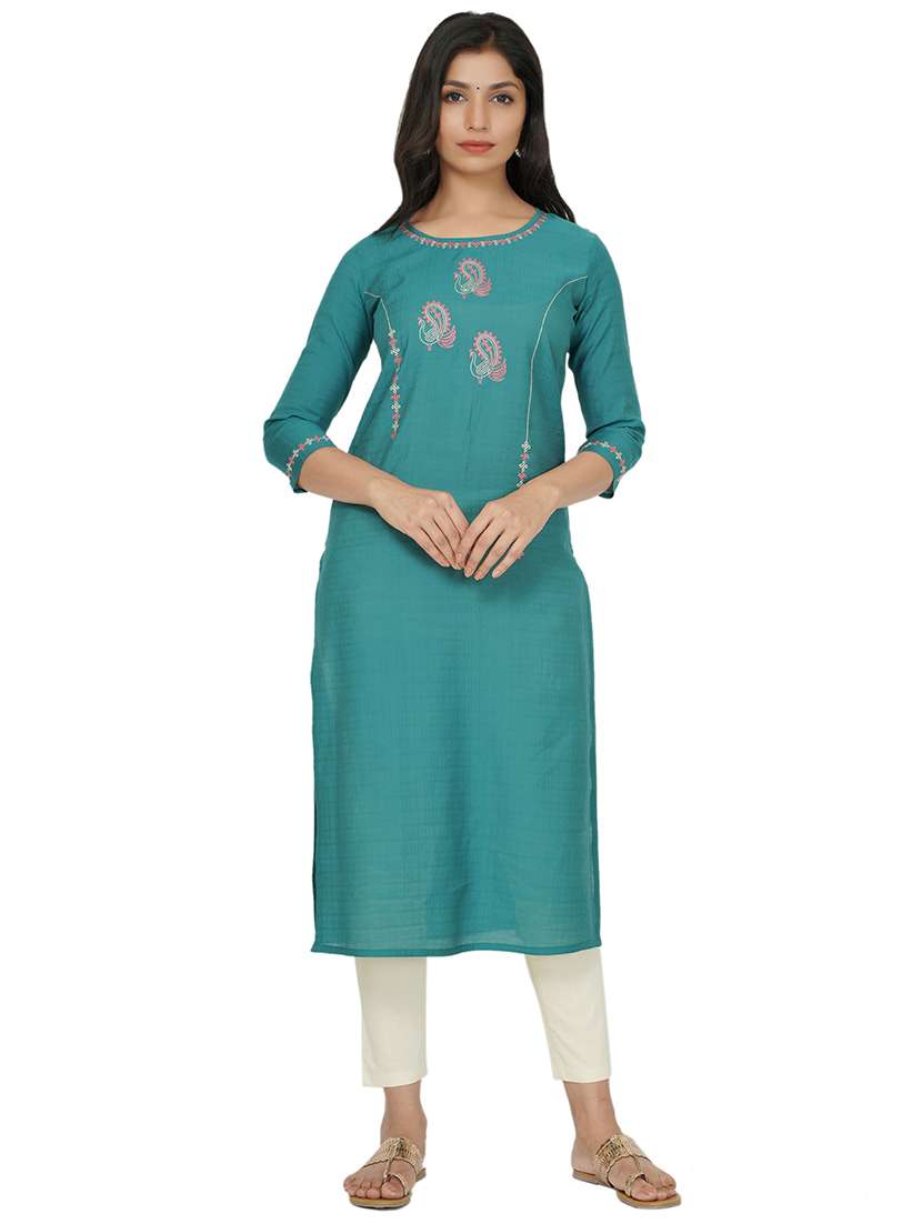 - Grab this beautiful kurta made up of cotton fabric featuring round neck designs.