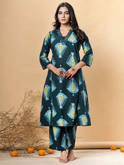 - Find gorgeous sets of ethnic wears in trending designs in teal colors suitable for casual wear of occasions.