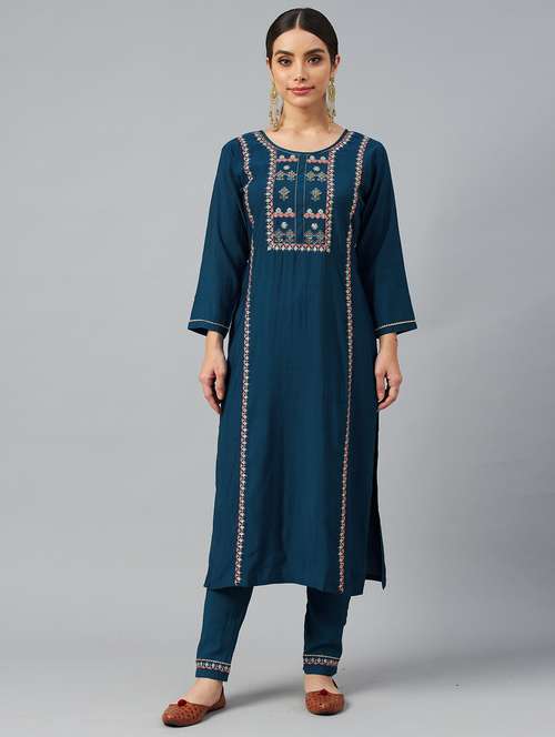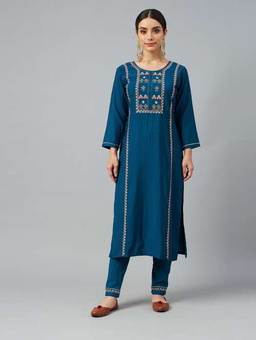 - » teal cotton kurta pant set