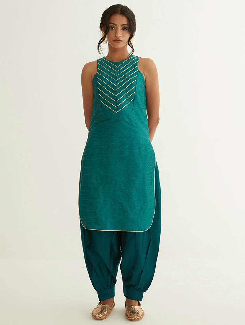 - » teal solid with work straight kurta