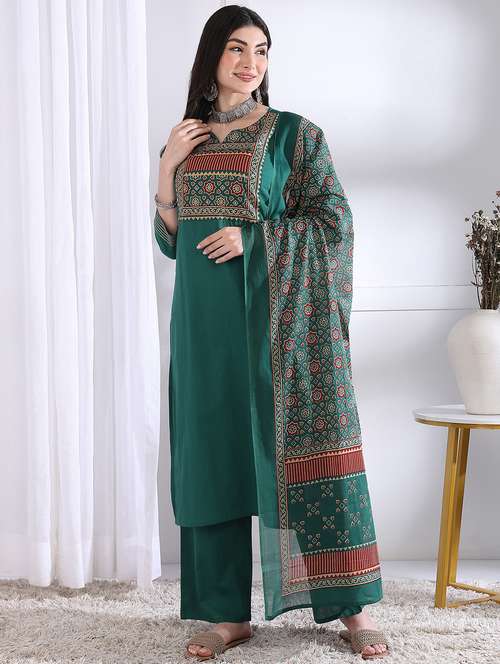 - Find gorgeous sets of ethnic wears in trending designs in teal colors suitable for casual wear of occasions.