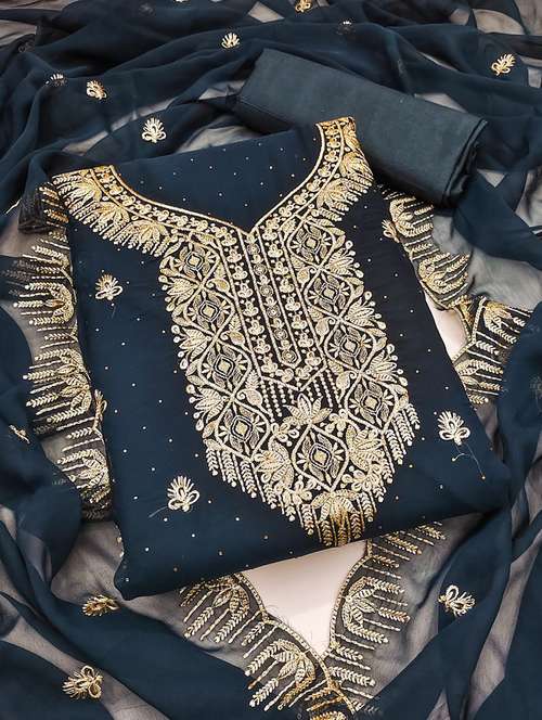 - Look ultra gorgeous in unstitched suits from Leeli Peeri Designer and grab these beautiful suits in teal colour.