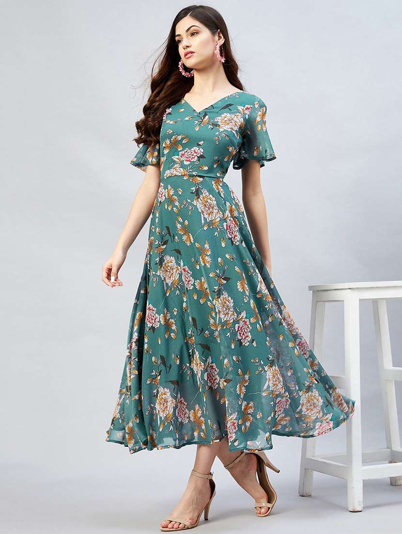 - » women teal green georgette fit & flare dress