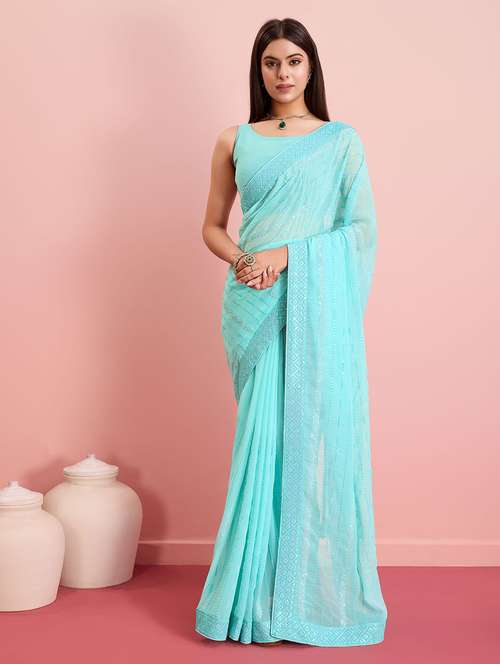 Vairagee Soft Georgette Embroidery Saree & Mono Banglory Blouse Saree is one minute ready to wear pre-stitched saree with hook and draw-string for better comfort and grip
