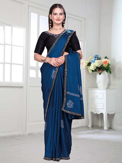 Color : Rama, Made from high-quality Lycra Fabric Hot Fix work Saree, giving the saree a stunning look and feel.If you're looking for a beautiful saree to wear to a special occasion.With a length of 5.25 meters and an additional 0.80 meters of Banglory unstitched blouse material. Available in various colors, this saree is perfect for weddings, parties, and other special occasions. Product color may slightly vary due to photographic lighting sources or your monitor settings.