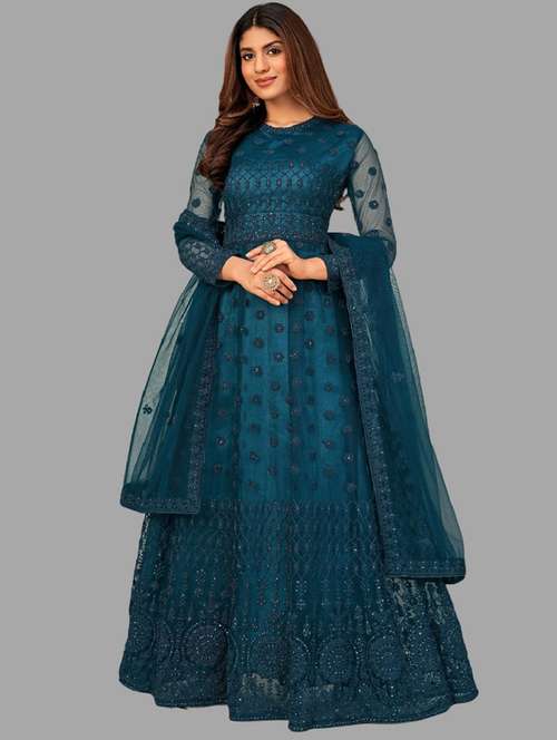 - These attractive gowns come in fit & flare made of net fabrics that can surely garner you lots of compliments when you wear it.