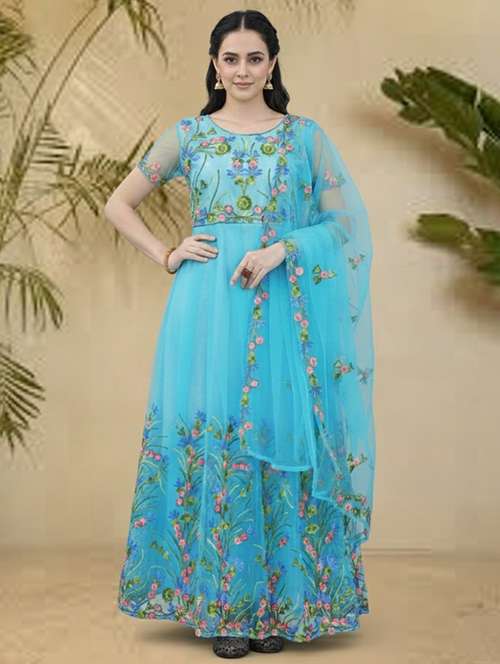 - These attractive gowns come in fit & flare made of net fabrics that can surely garner you lots of compliments when you wear it.