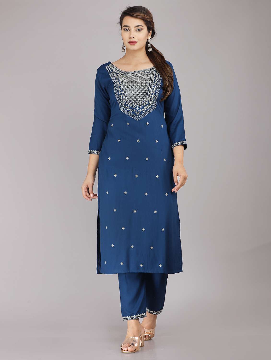 - » teal embroidered kurta pant set