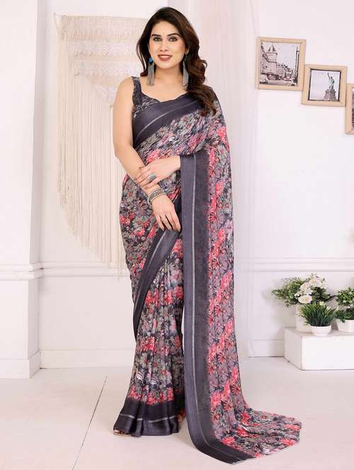 women floral printed saree with blouse - 22061593 -  Standard Image - 1 women floral printed saree with blouse - 22061593 -  Zoom Image - 1
