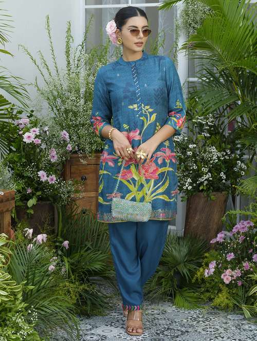 - » women floral print three quarter sleeve ethnic co-ord set