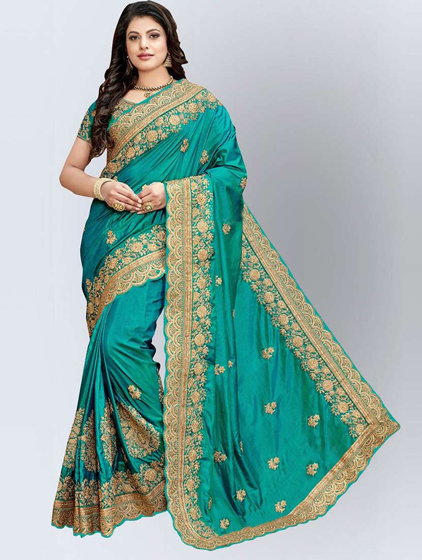 This beautiful embroidery design saree for women is made from georgette. this saree length is 5.5 meter blouse length is 0.8 meter as unstitch. Traditional design embroidery work is giving eye catching look to this saree. Make you self more glamorous in every occasion,event,festive with this saree.