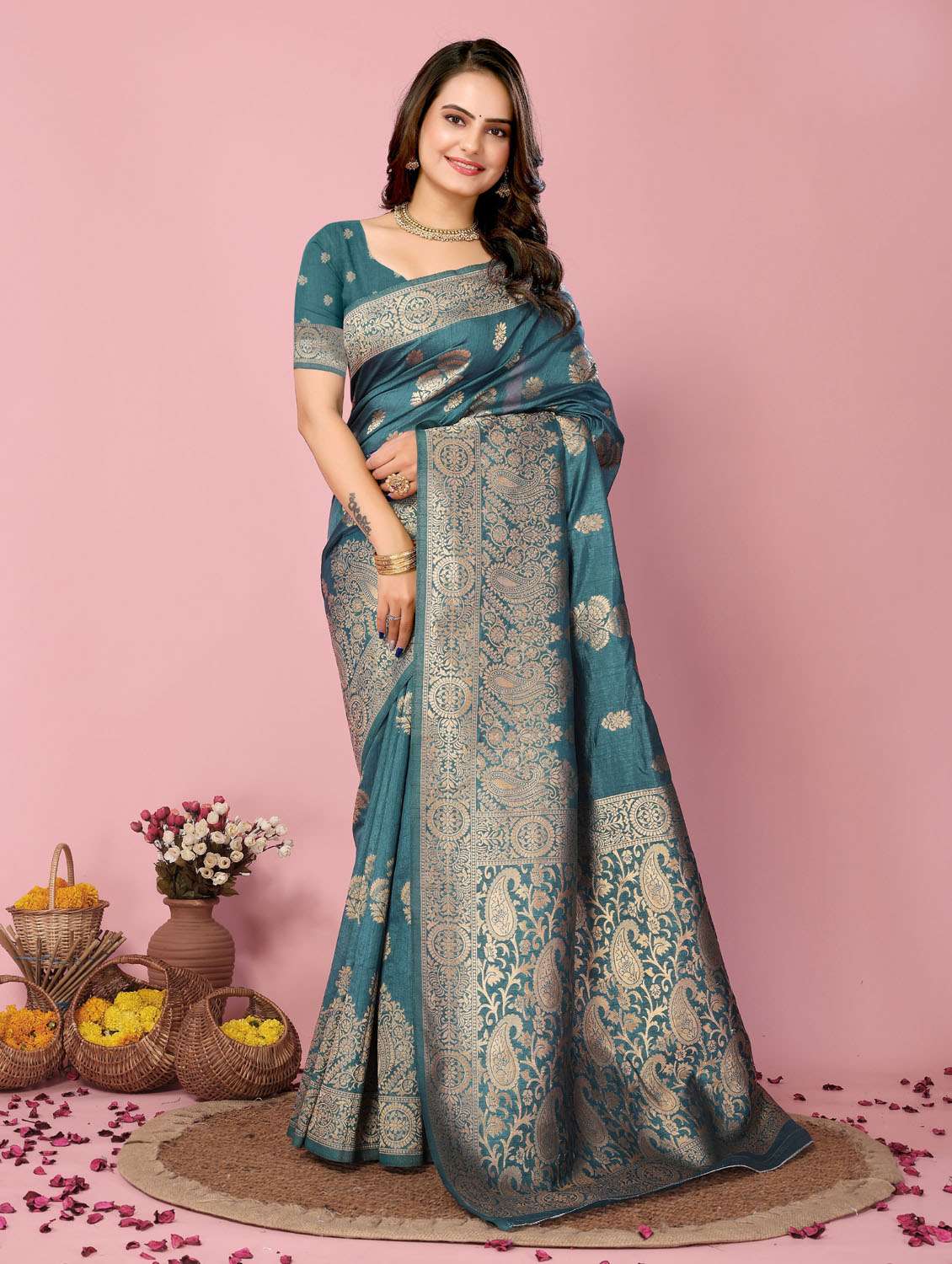women self design banarasi saree with blouse