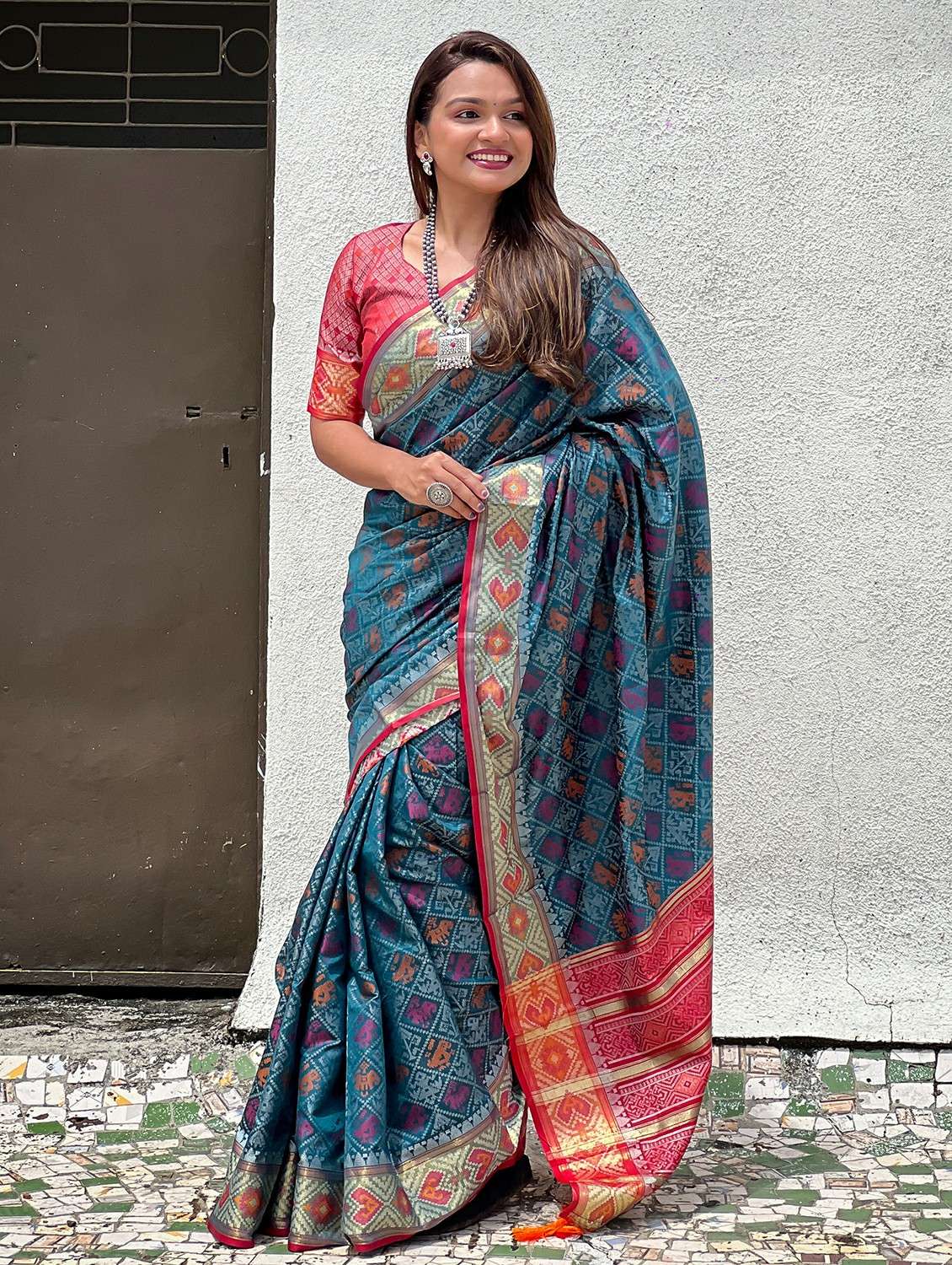 women self design patola saree with blouse