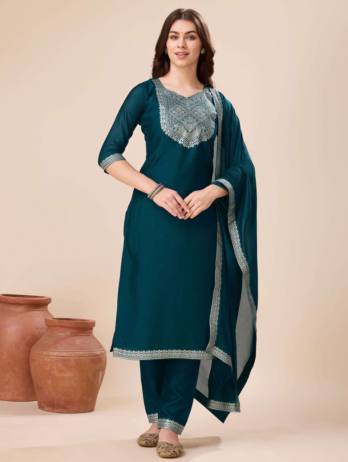 - Find gorgeous sets of ethnic wears in trending designs in teal colors suitable for festive wear of occasions.