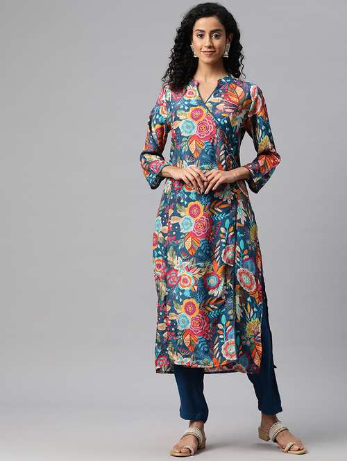 - Find gorgeous sets of ethnic wears in trending designs in blue colors suitable for casual wear of occasions.