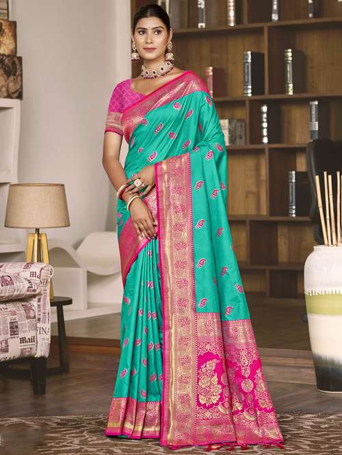 Sangam Prints SEA GREEN SILK Woven Work Festival Saree