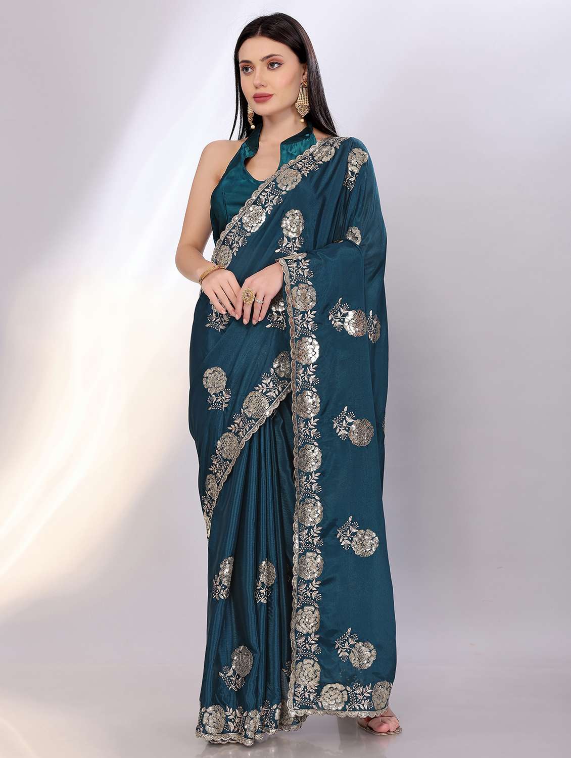 Vairagee Chinon Silk Embroidery Saree & Chinon Silk Blouse