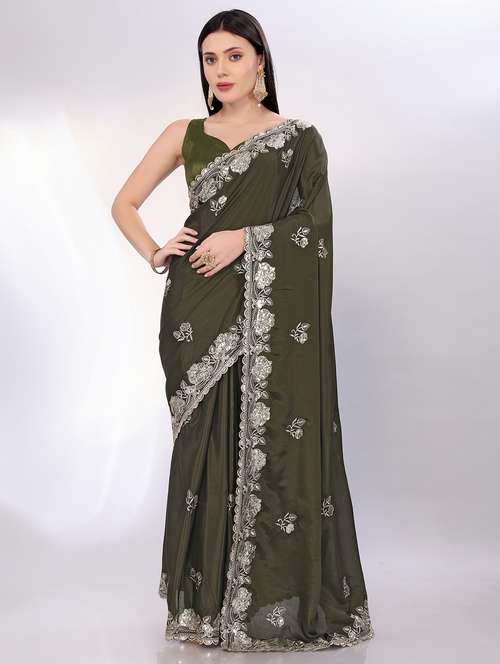 - » women solid with work embroidered saree with blouse
