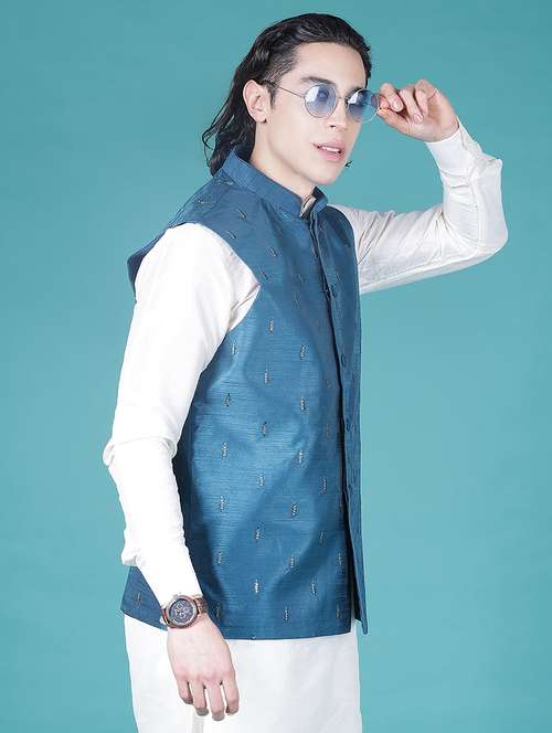 • Look stylish and confident in V-Mart brands with teal Nehru jackets in which you will feel your best.