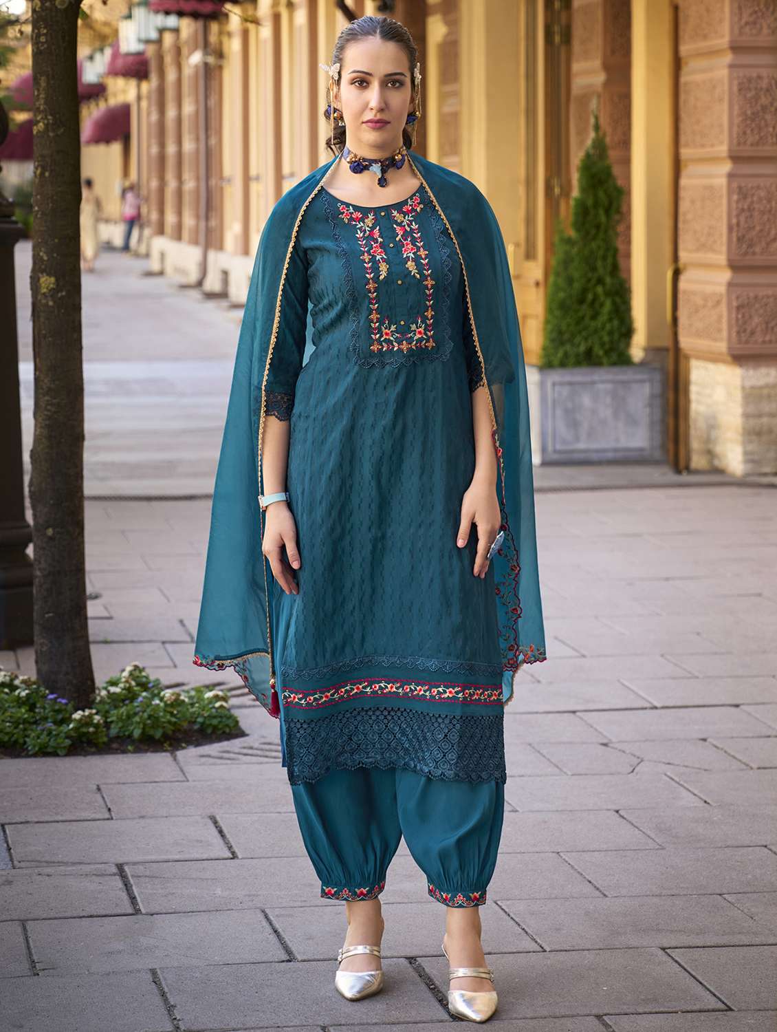- Find gorgeous sets of ethnic wears in trending designs in teal colors suitable for festive wear of occasions.