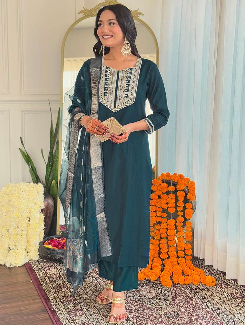 women three quarter sleeve kurta pant with dupatta set