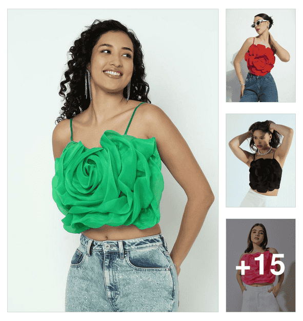 women self designed shoulder strap crop top