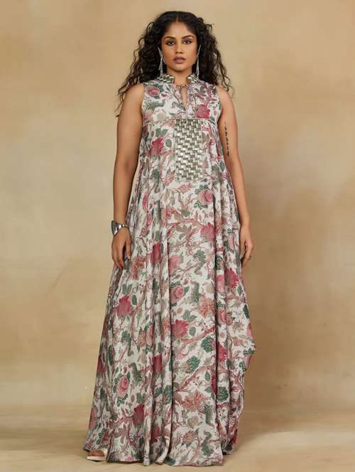 women floral sleeveless asymmetric ethnic dress