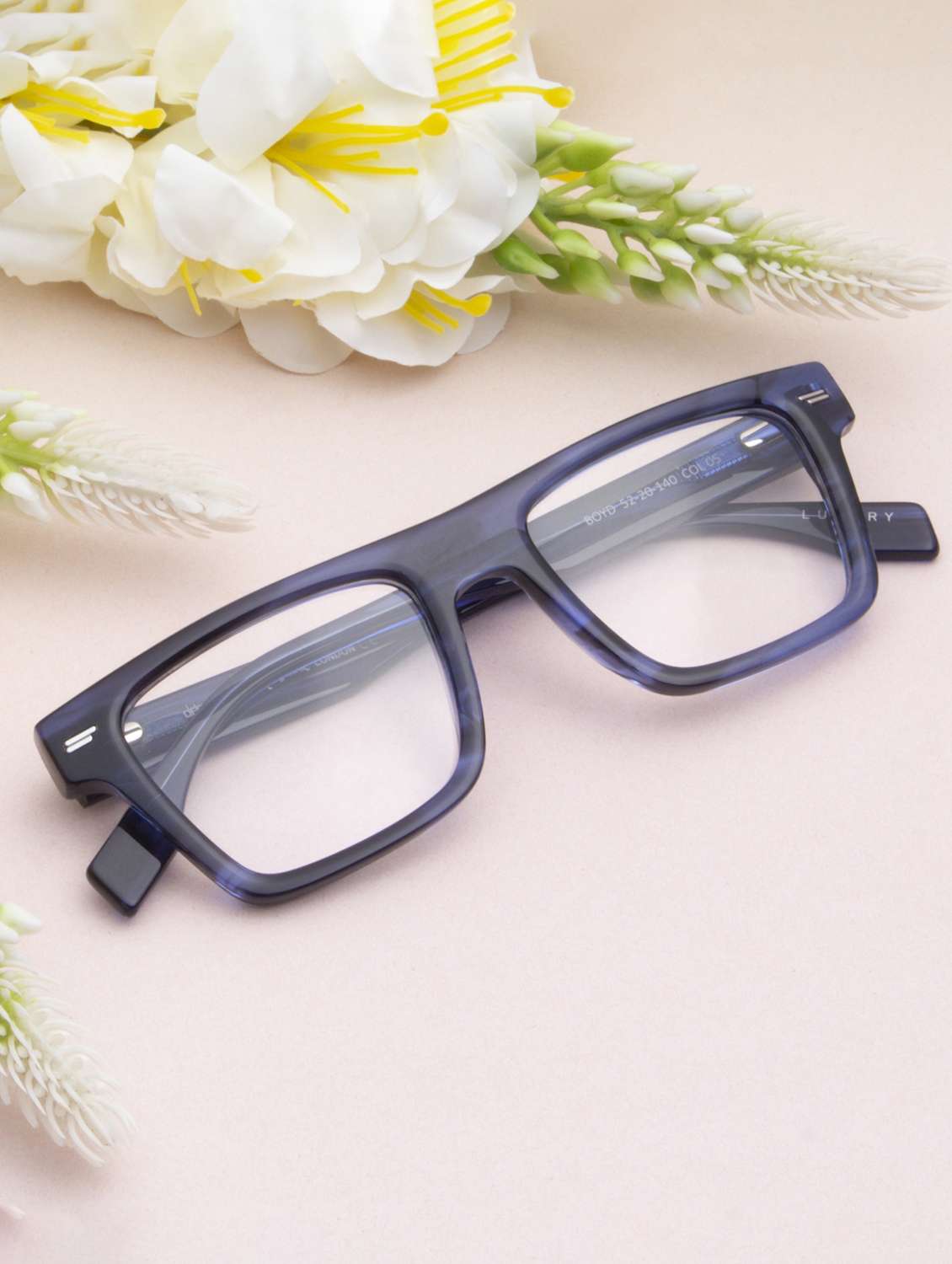 - Look smart and stylish in blue spectacles for men available in ONE SIZE frames to fit you perfectly.