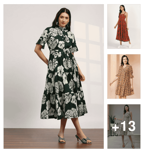 women printed three quarter sleeve tiered dress