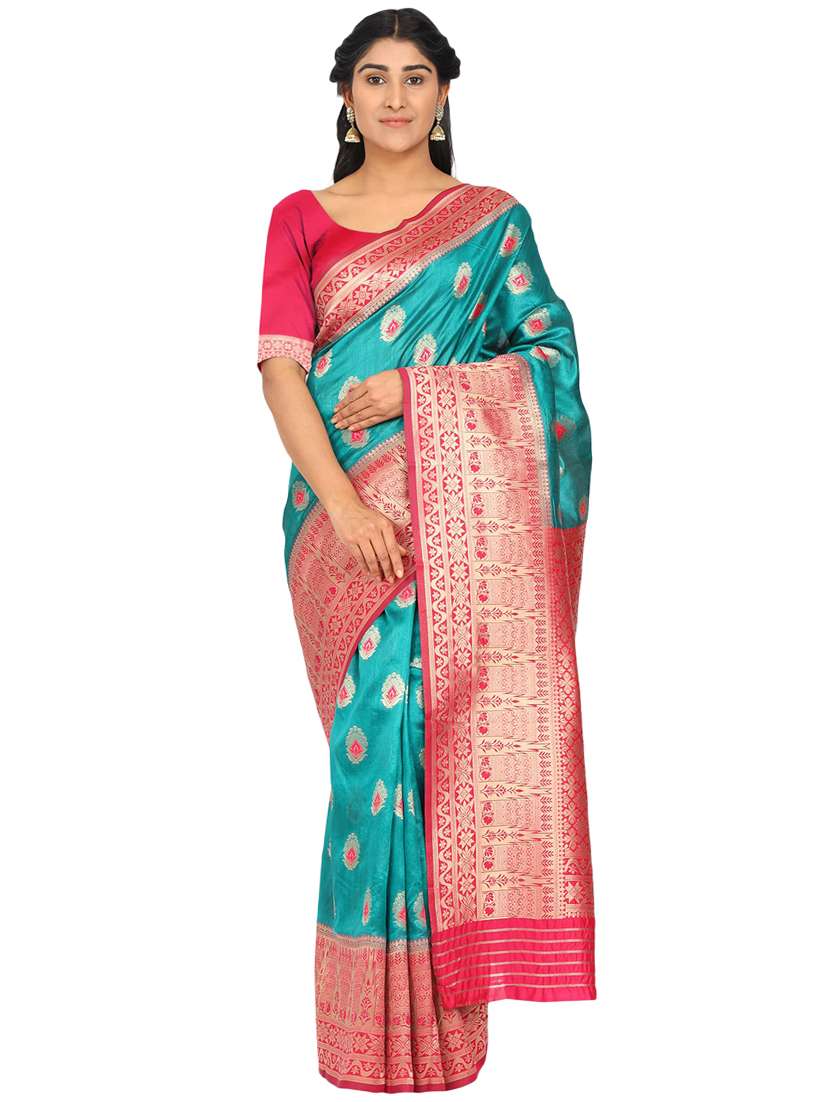 - » turquoise art silk banarasi saree