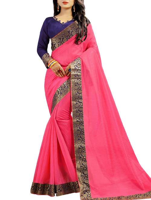- » lace border solid pink saree with blouse