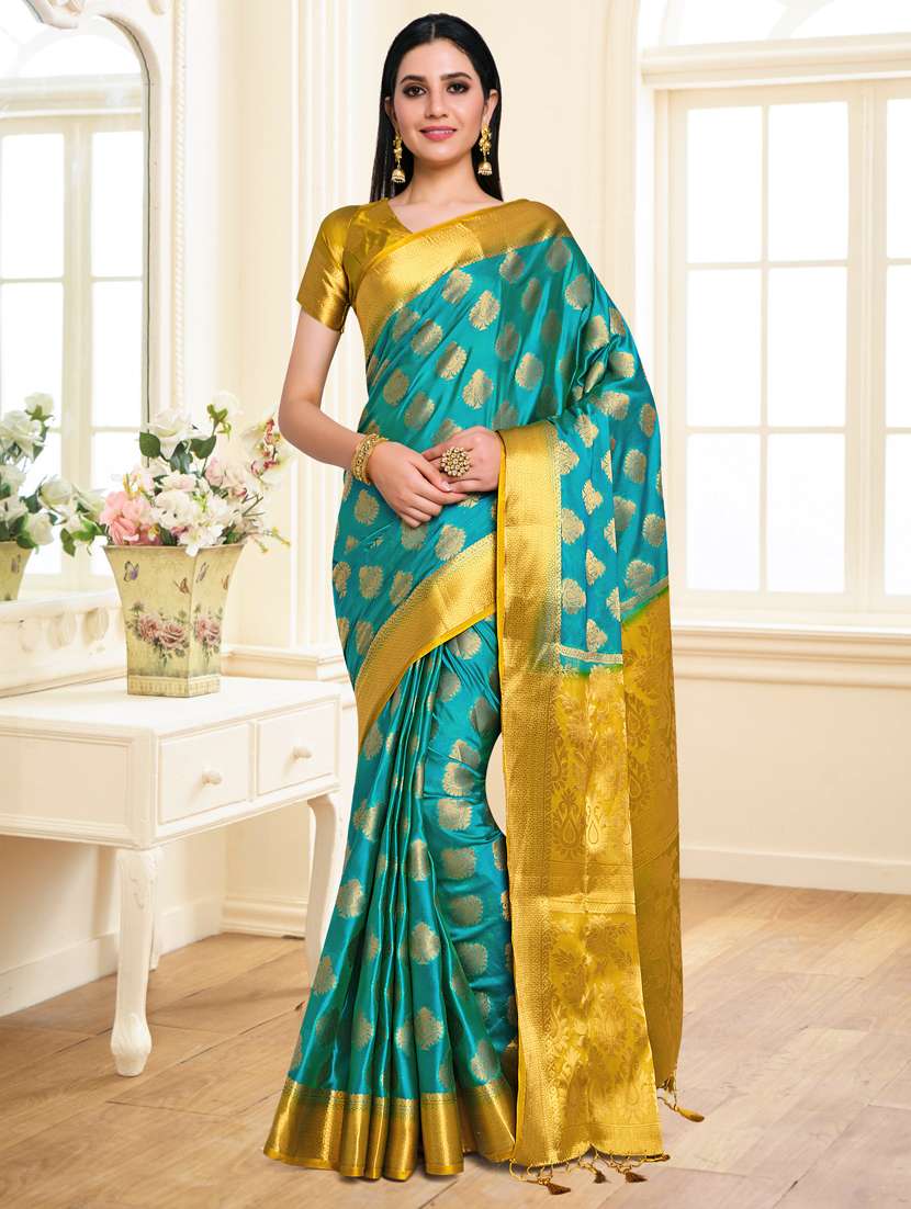 - » turquoise art silk kanjivaram saree with blouse