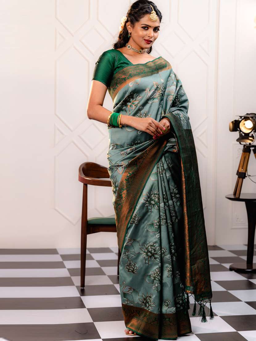 women floral printed bordered saree with blouse