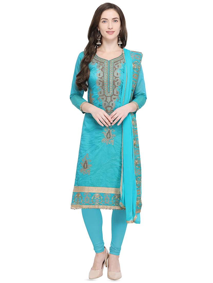 turquoise embroidered churidaar unstitched suit