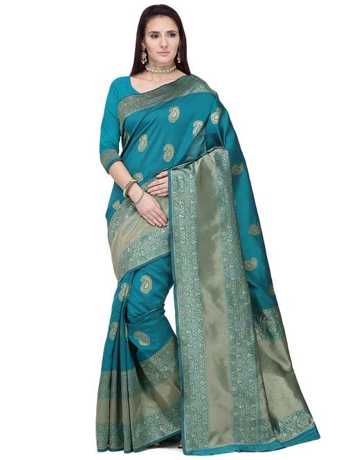 - » turquoise blue banarasi saree