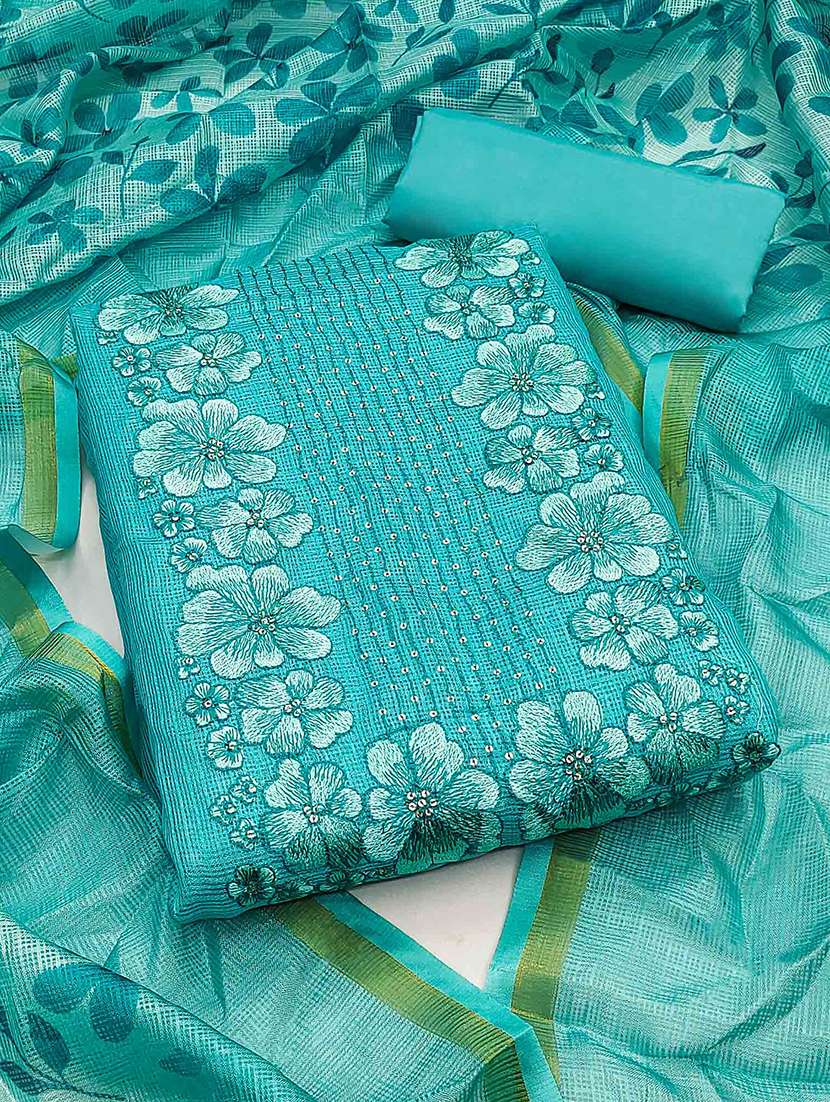 embroidered unstitched suit set with dupatta