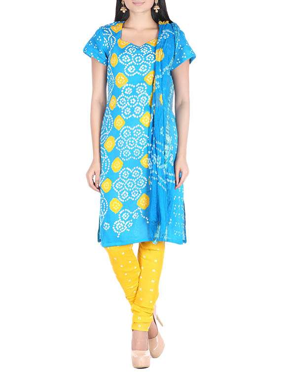 - » turquoise cotton blend churidaar suits unstitched suit