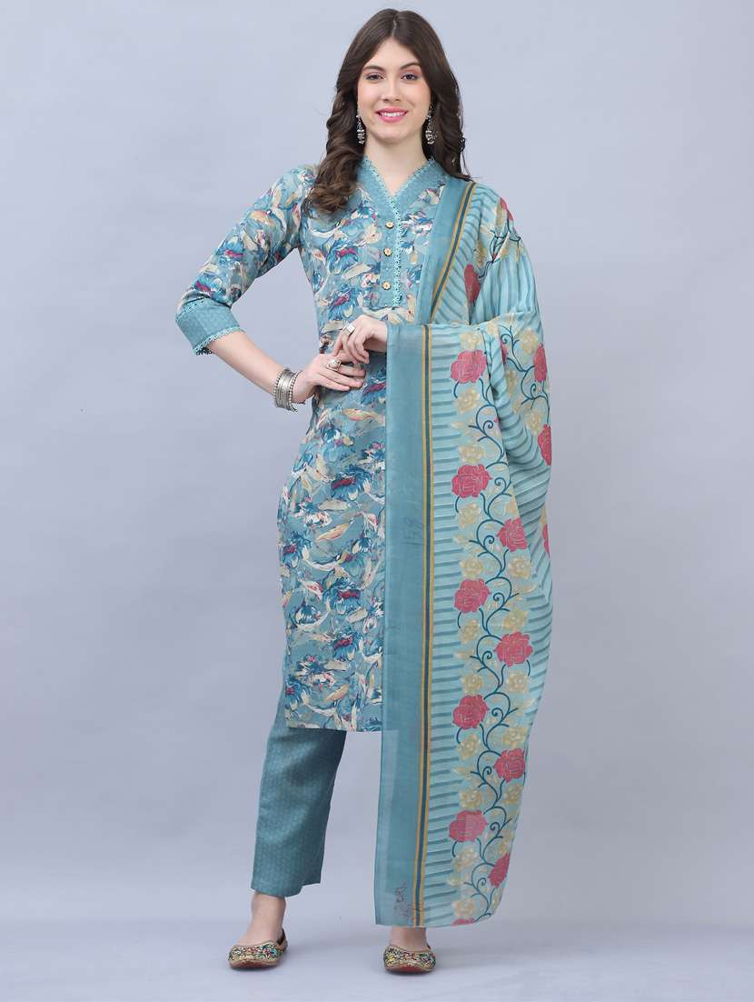 - Find gorgeous sets of ethnic wears in trending designs in turquoise colors suitable for casual wear of occasions.
