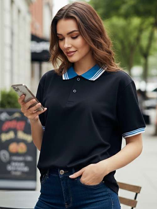 - » women solid short sleeve oversized polo t-shirt