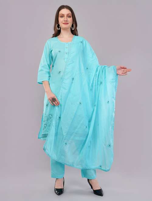 - Find gorgeous sets of ethnic wears in trending designs in turquoise colors suitable for casual wear of occasions.