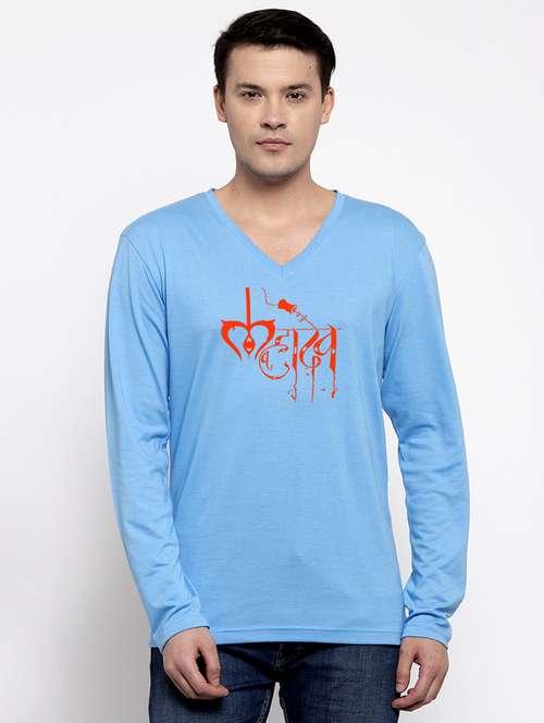 - » men v-neck chest printed t-shirt
