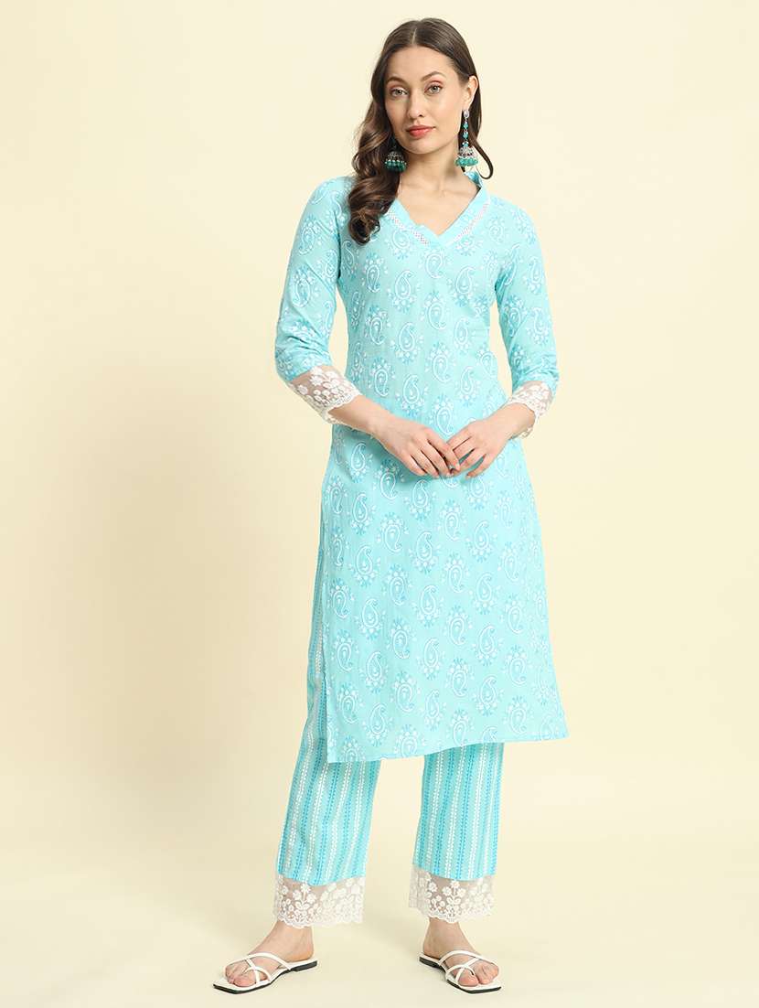 - Find gorgeous sets of ethnic wears in trending designs in light blue colors suitable for casual wear of occasions.