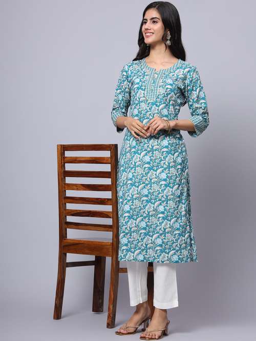 - Grab this beautiful kurta made up of cotton fabric featuring notch neck designs.