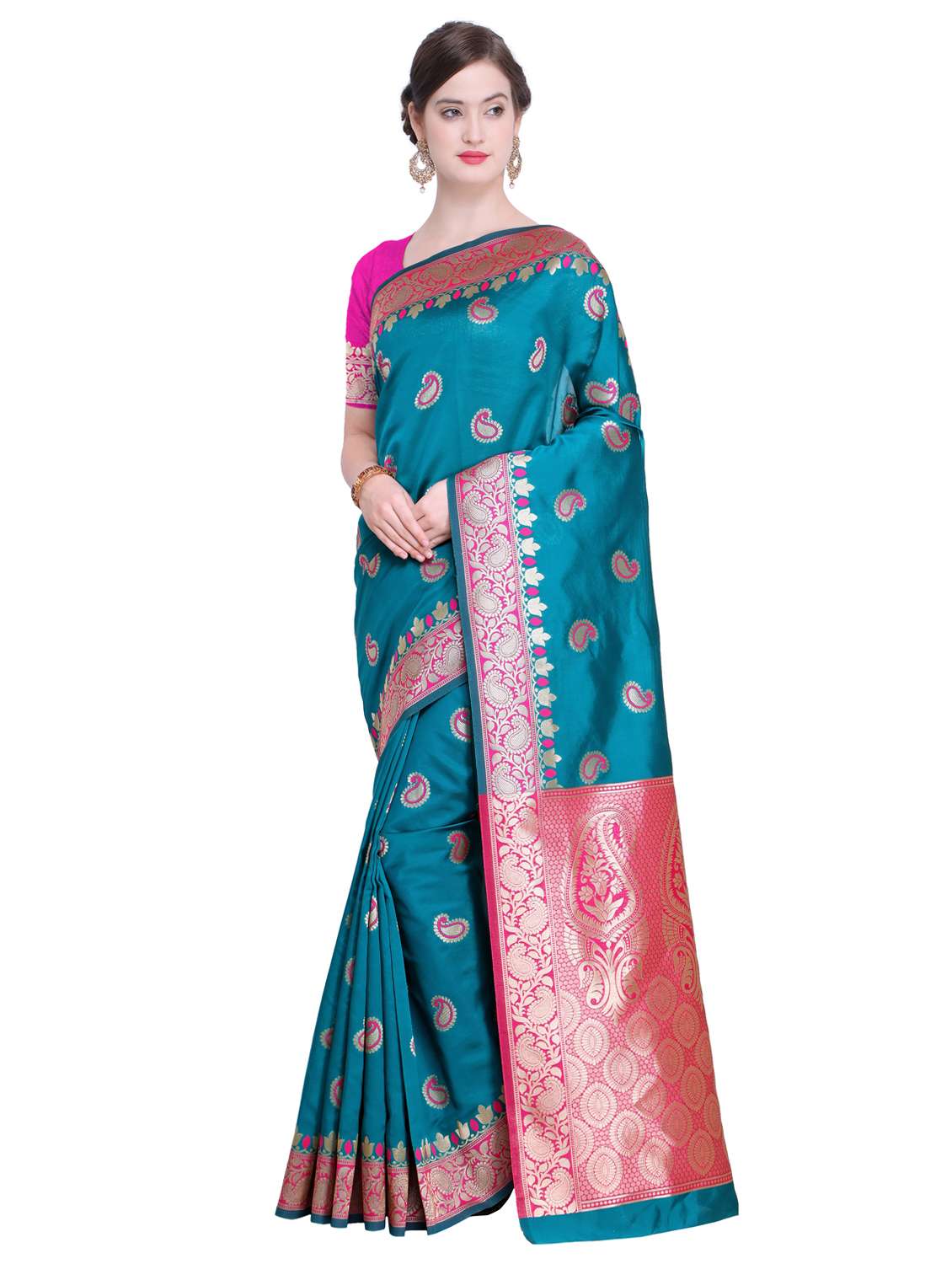 - » paisley zari border turquoise kanjivaram saree with blouse