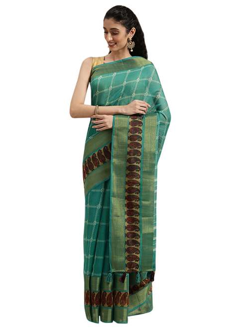 - » turquoise cotton silk printed saree