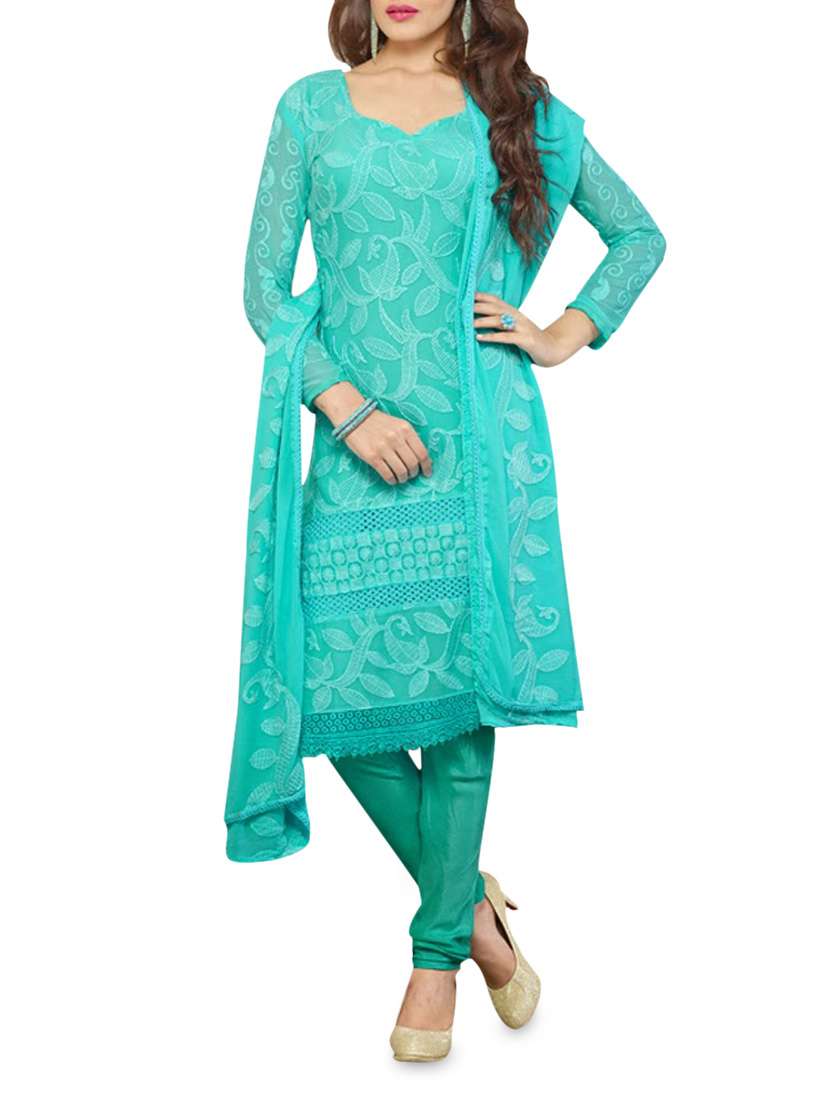 - » turquoise embroidered georgette suit set
