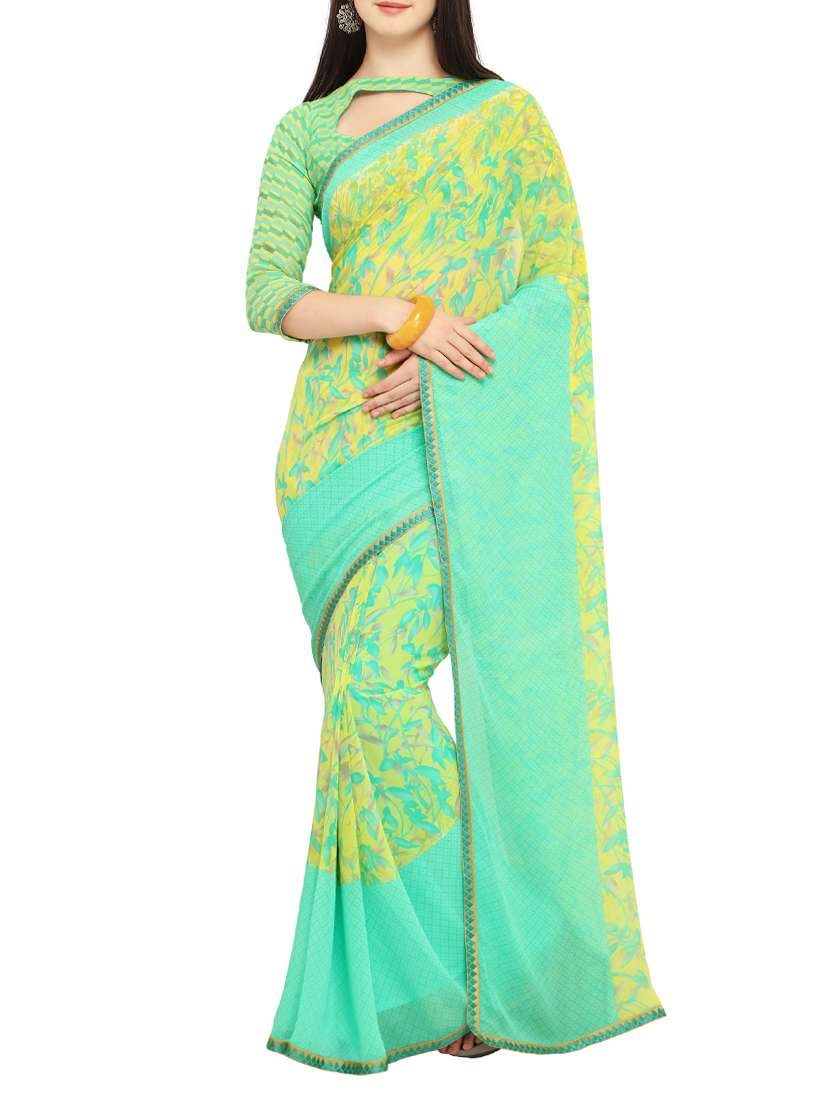 contrast bordered printed saree with blouse - 15414845 - Very Small Image - 1