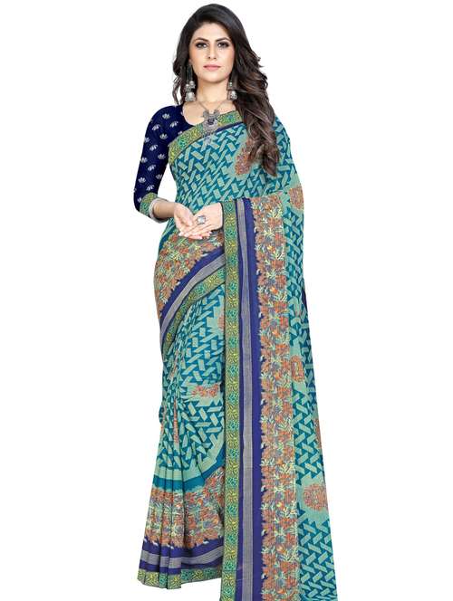 floral printed saree with blouse - 18351410 - Very Small Image - 1